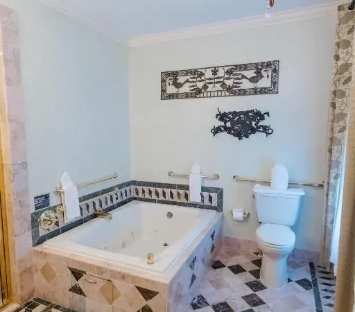 Heritage estate with fine dining, floral grounds, and Jacuzzi in room in Baltimore.