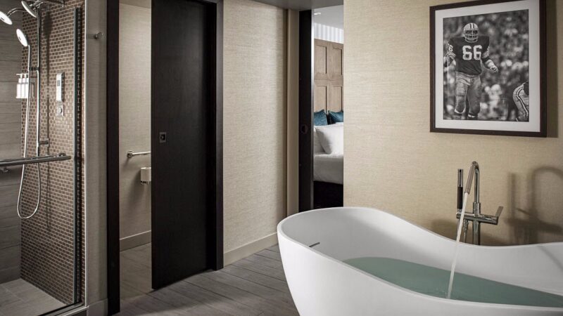 Luxury lodge with Jacuzzi suites, fine dining, and a location near Lambeau Field for sports fans.