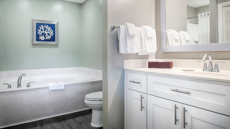 We had three challenges with our stay. First, the shower stall is small and tight, which is caused by the second shortcoming. In the primary bedroom area you will find a Jacuzzi tub. Deciding to keep an outdated feature before, during, and after a beautiful room reservation makes sense financially, but from a use of space, the tub should have been removed. Opening up the shower area would have met the standards for today's travelers versus keeping a 90s decor piece.