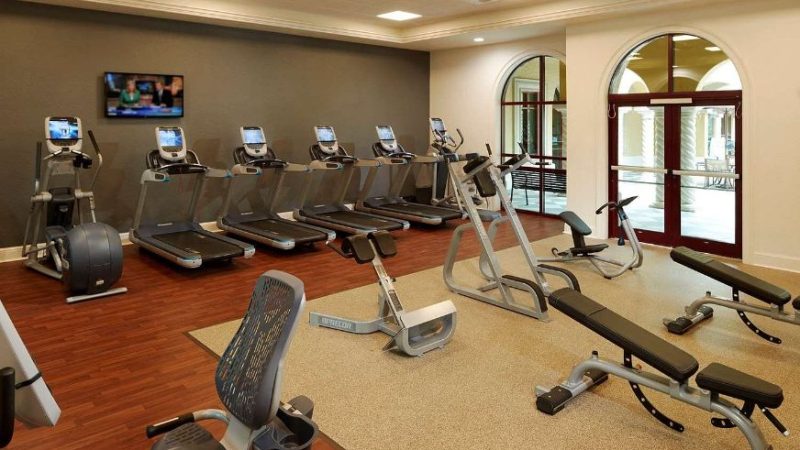 Do any of the hotels with Jacuzzi suites in Orlando have a fitness center?
