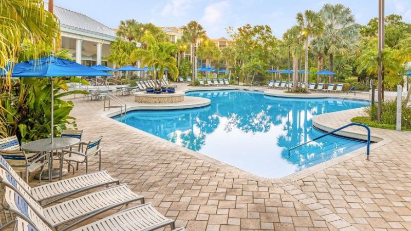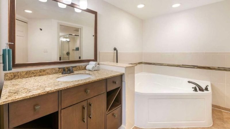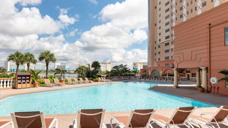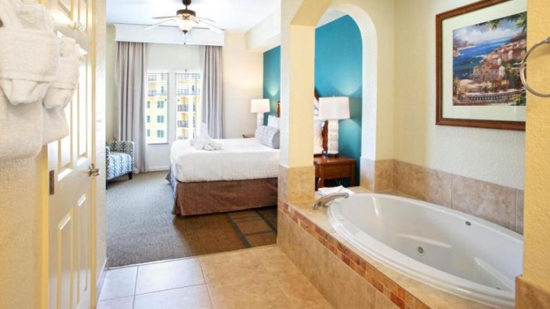 There are many hotels with in-room Jacuzzi in Orlando with an on-site pool. Some of them include Hilton Grand Vacations at Tuscany Village, Wyndham Grand Orlando Resort Bonnet Creek, and Marriott’s Royal Palms.