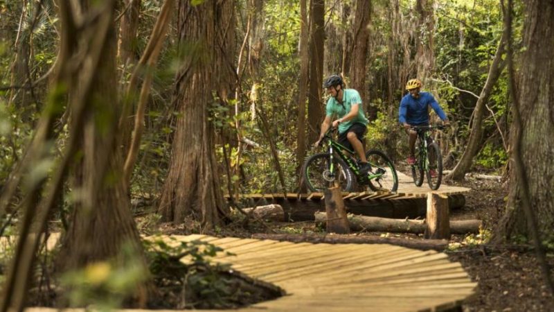 Lake Eola Park is a peaceful escape. It has swan boats and walking trails. It’s ideal for a romantic evening.