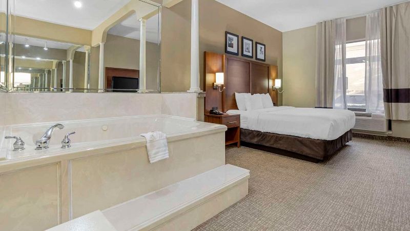 Galveston is 50 minutes south if you want beach hotels with Jacuzzi suites, while Midland and Tyler are also great options that offer lovely hotels with Jacuzzi suites.