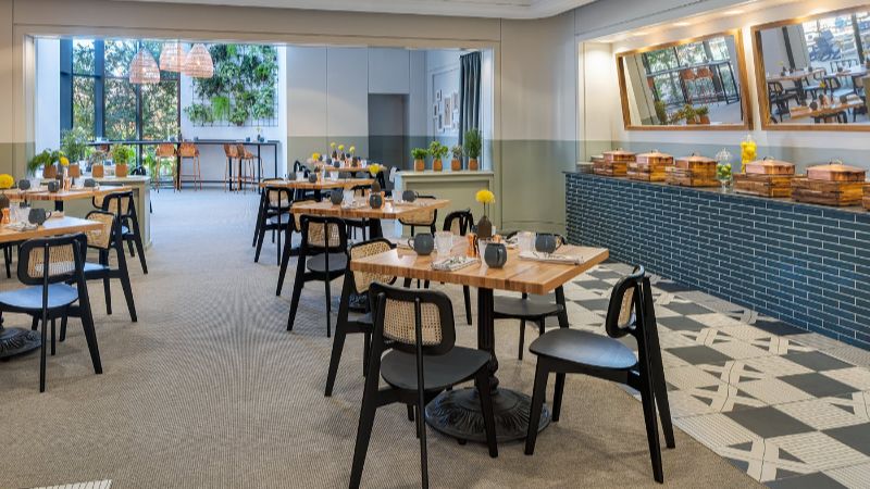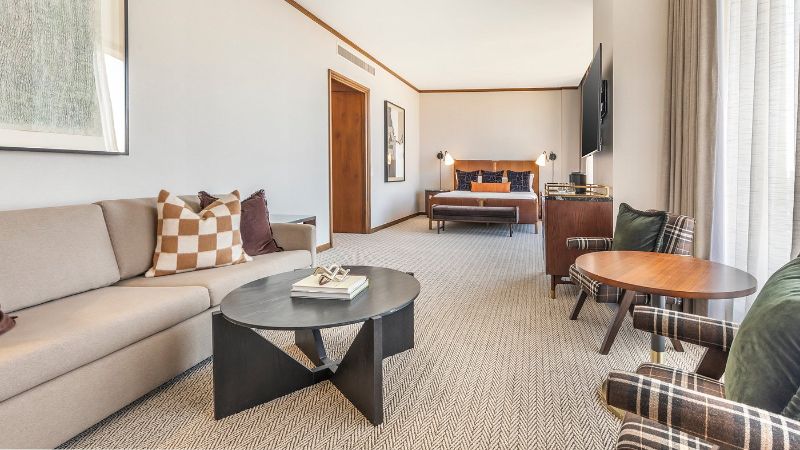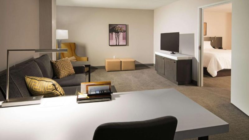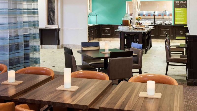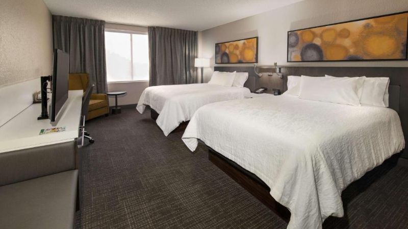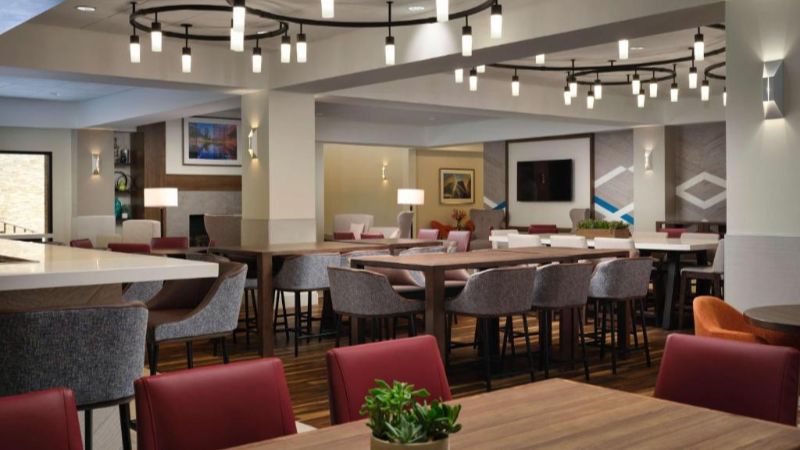 Hilton hotel designed for business and leisure, offering private hot tub, high-speed Wi-Fi, and modern workspaces.