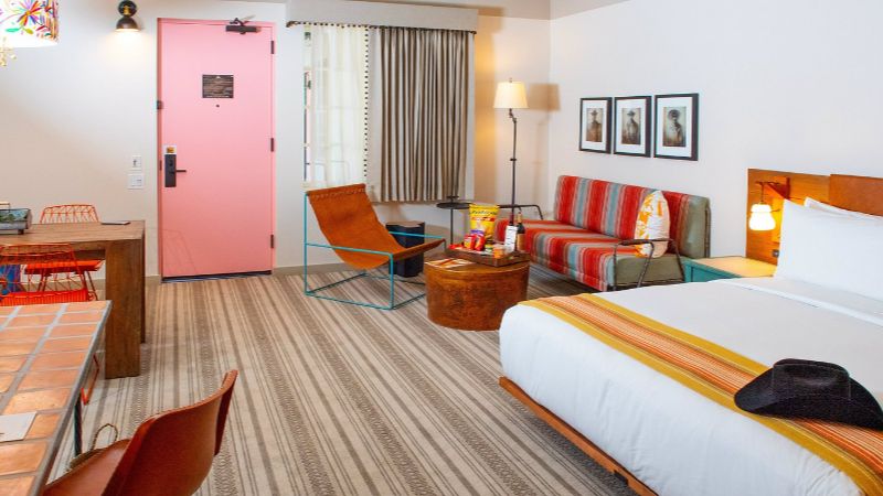 We agree with what others have said about the snacks/drinks they stock the room with: too many and way overpriced. We were planning on eating at the 2 Mules Cantina but decided to walk across the street to the music center, which was really nice.
