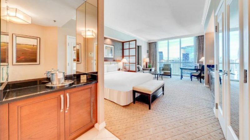 The price of a hotel with a jacuzzi in room in Las Vegas can vary depending on the hotel you choose going between $60 to $500 with average price around $180 per night. If you’re looking for a luxurious and relaxing experience, staying in a hotel room with a Jacuzzi is definitely worth the extra cost!