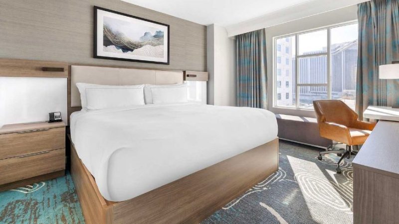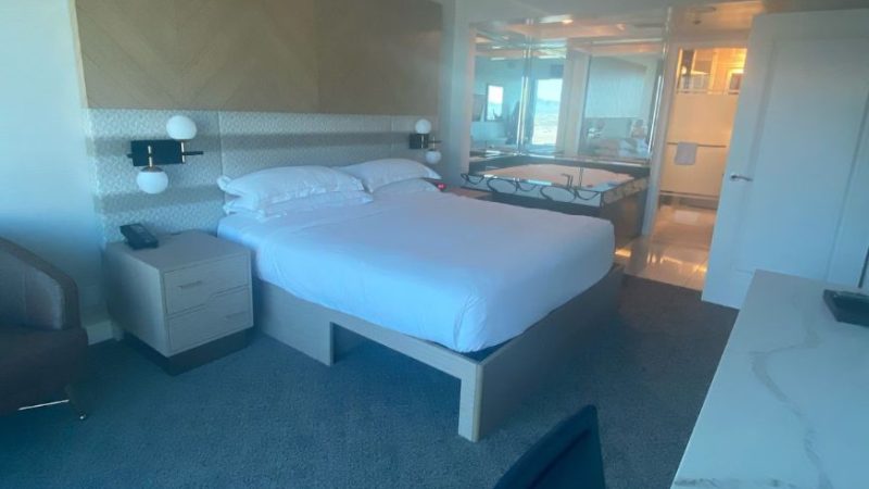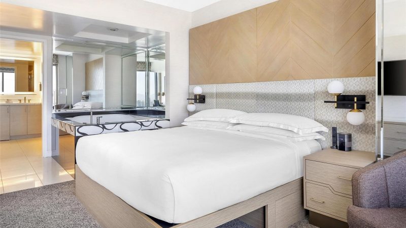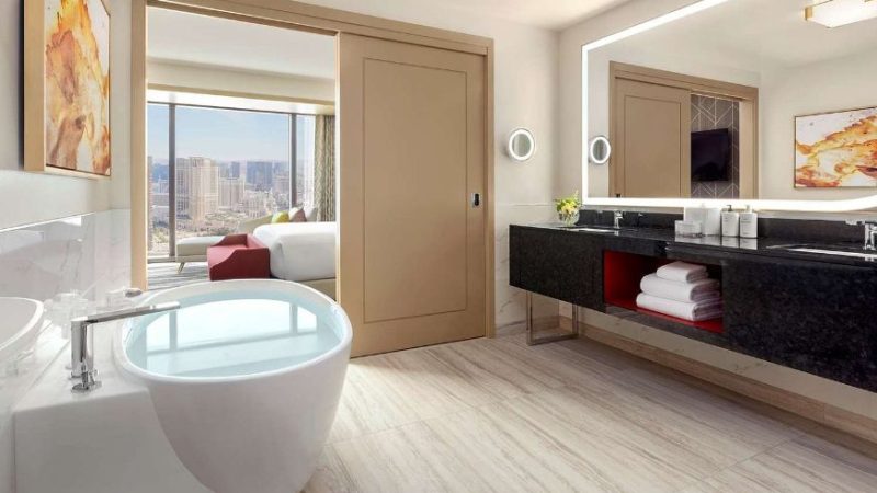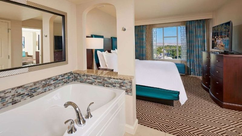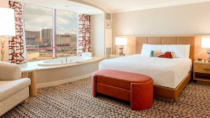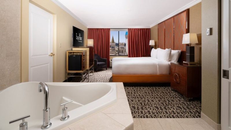 The price of a hotel with a jacuzzi in room in Las Vegas can vary depending on the hotel you choose going between $60 to $500 with average price around $180 per night. If you’re looking for a luxurious and relaxing experience, staying in a hotel room with a Jacuzzi is definitely worth the extra cost!