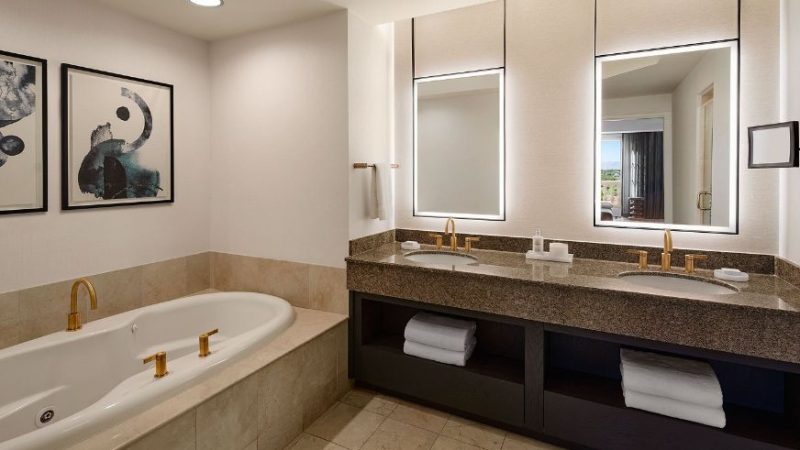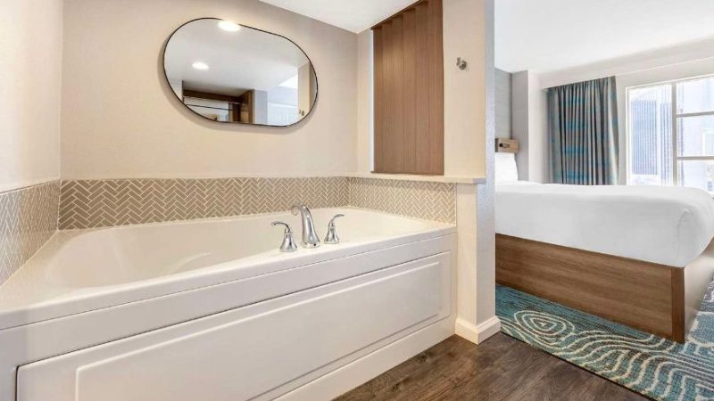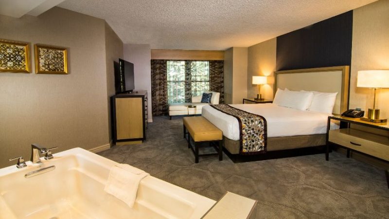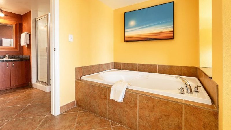 Jacuzzi tub in room in Las Vegas are designed for year-round use, including inclement weather. Whether it’s raining or chilly outside, you can still enjoy the soothing waters of the jacuzzi. Many indoor jacuzzis provide a cozy and sheltered environment, allowing guests to relax regardless of the weather conditions outside.