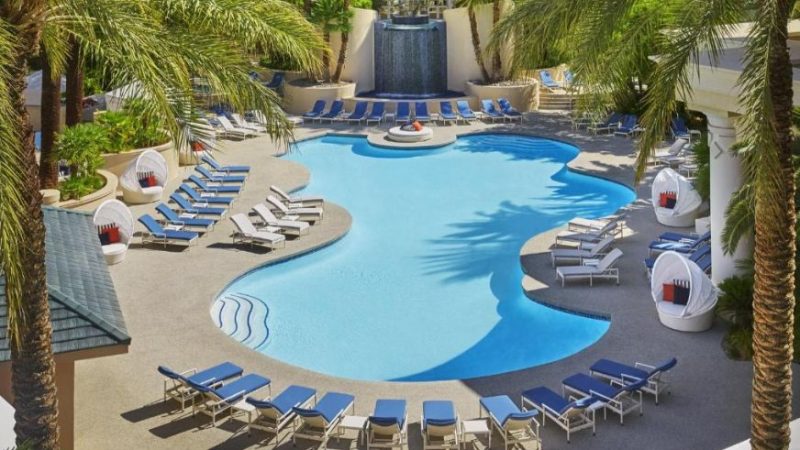 Cons: rooms are worn and dated, AC does not get cold, the hotel feels dark in design, rooms have a smell to them, most of the good stuff is a long walk to the Palms.