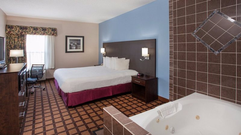 In addition to hot tubs in some rooms, these hotels usually provide complimentary Wi-Fi, fitness centers, on-site dining options, and often complimentary parking. Some also offer amenities like indoor swimming pools, business centers, and room service.