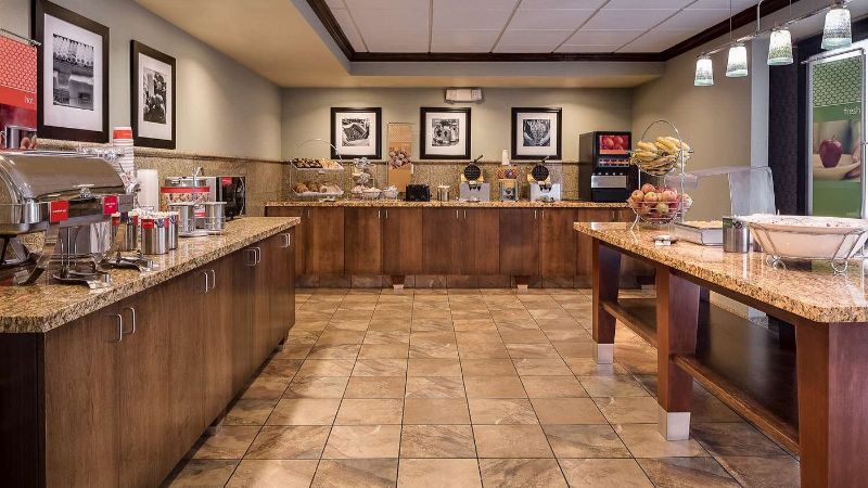 I don't remember her name, but a young black lady during the night shift was amazing and helped us greatly. Definitely deserves a raise. Gave us all the information we needed. Breakfast was your typical hotel breakfast. Nothing bad, but nothing to brag about.
