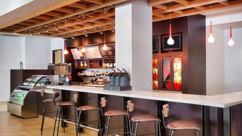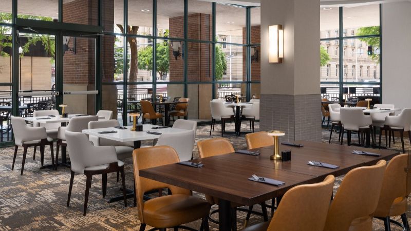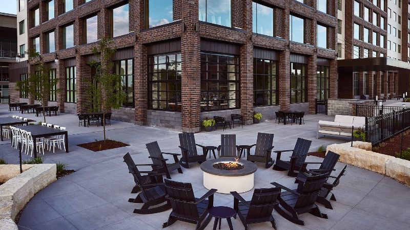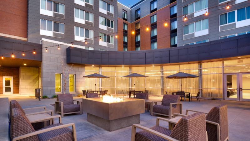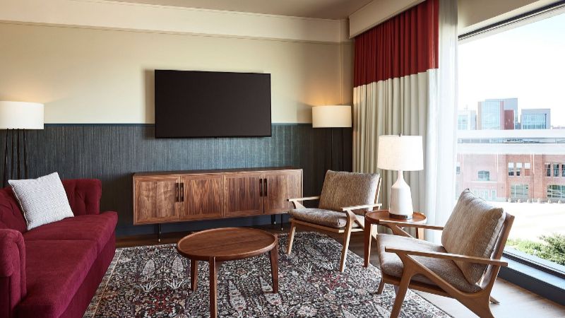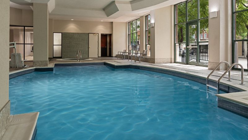 Modern hotel with Jacuzzi in room, pool, and spa, in Lincoln’s Historic Haymarket near the University of Nebraska.