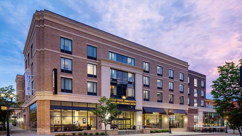 Modern hotel with private spa tubs, indoor saltwater pool, restaurant, and steps from Kent State University.