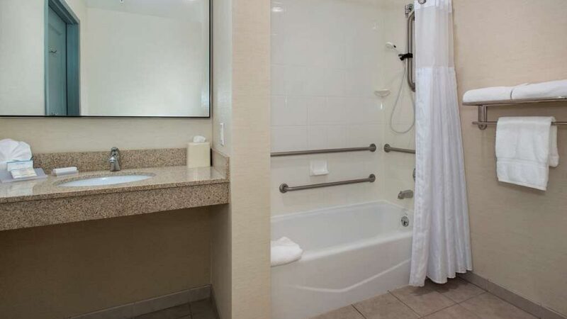 Wonderful experience at this hotel! The only reason I rated 4 stars instead of 5 on the room is because as a handicap accessible room, the toilet was too low and had no grab bar! Other than that, we were extremely pleased with this hotel, from the very friendly staff to the clean room and very comfortable furniture! Would highly recommend! Area was also very convenient! Keep up the good work!