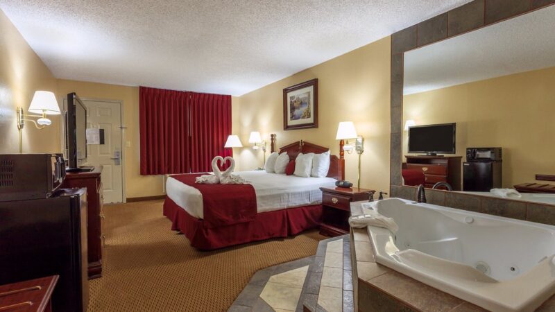 Hotels with Jacuzzi in room in Branson, MO often offer additional amenities such as complimentary breakfast, free Wi-Fi, indoor or outdoor pools, fitness centers, and convenient parking. Some hotels may also have on-site restaurants or lounges.