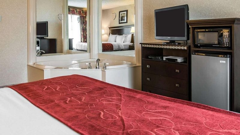 Jacuzzi in room suites in Canton typically include Wi-Fi, flat-screen TVs, coffee makers, and comfortable bedding. Some hotels also add mini-fridges, microwaves, or larger bathrooms, while bigger properties may offer fitness centers, swimming pools, or on-site dining to enhance your stay.