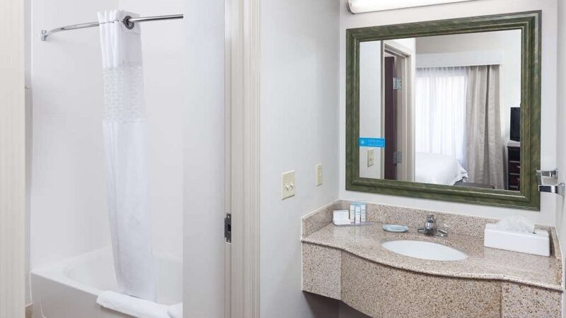 Business-friendly HIlton hotel with suites including bathtubs, pool and on-site restaurant, located near Panama City Beach.