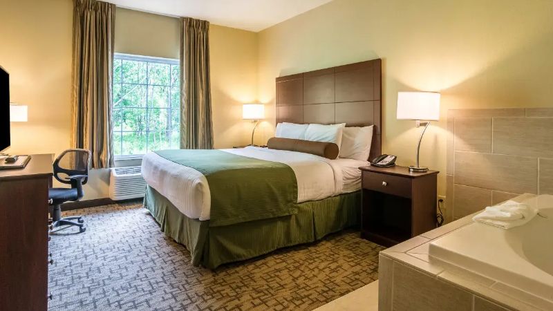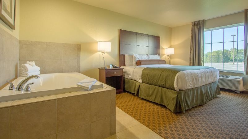 In addition to a Jacuzzi in the room, these hotels often offer a variety of amenities such as free Wi-Fi, complimentary breakfast, fitness centers, and indoor swimming pools. Some may offer additional amenities like on-site restaurants, business centers, and room service.