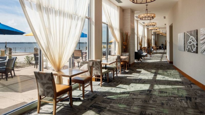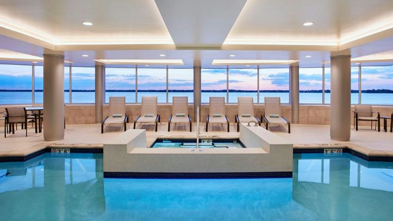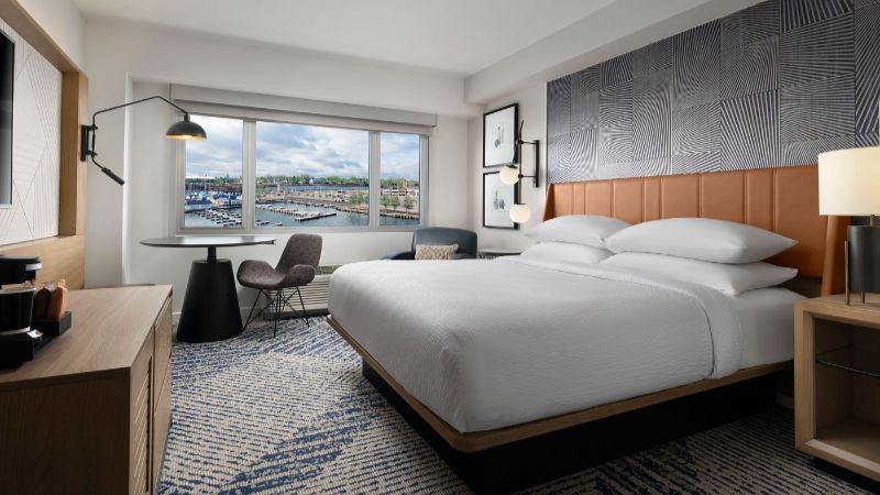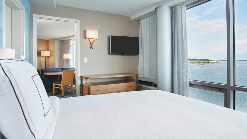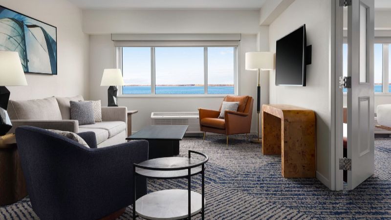 We were greeted by the biggest smiles at the front desk (Chris!) with everything about our stay explained to us. Efficient check-in, and a beautiful bar and fireplace as you walk in. We got a bayside view, and it felt like we were on the water—it was AMAZING. Club level is completely worth it, with snacks at night and breakfast complimentary in the morning!