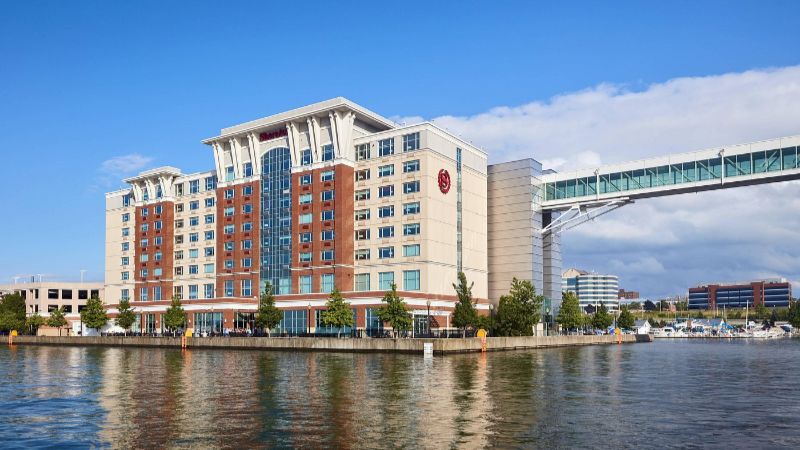 Top-rated Erie Hilton hotel with Jacuzzi in room, pool, restaurant and gym, near Presque Isle State Park and Splash Lagoon.