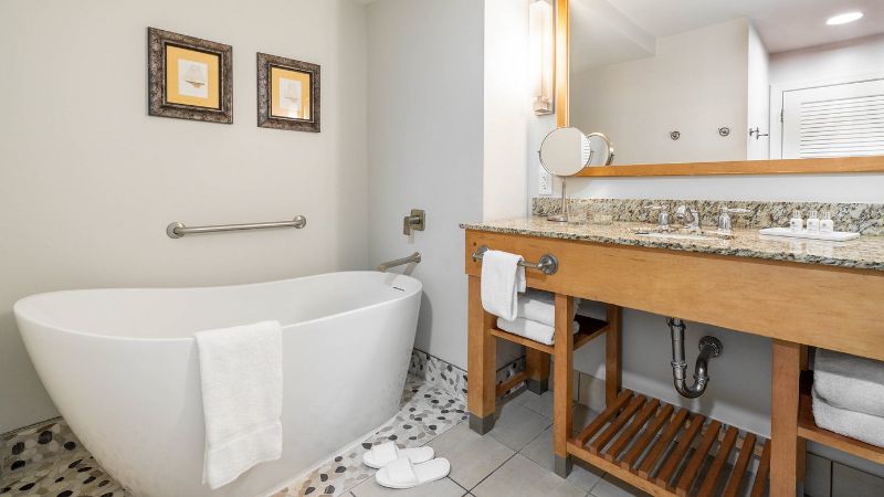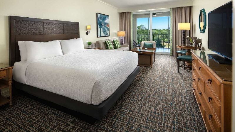 Jacuzzi or spa tub rooms in Fort Myers typically include flat-screen TVs, free Wi-Fi, air conditioning, coffee makers, and modern bathrooms. At resort properties, suites may also have balconies with Gulf views, kitchenettes, or separate living areas, offering a more luxurious stay.