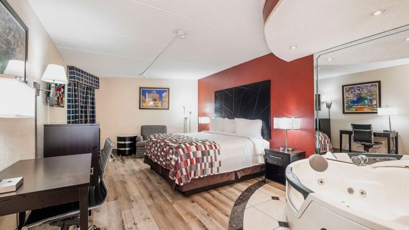 Explore a realm of comfort with our hand-picked hotels with Jacuzzi and hot tub in room in Macon. We’ve laid out key details like hotel reviews, room specifications, location highlights, and a brief narrative for each. Once you’ve settled on a hotel, hit ‘See available rooms‘ to journey to our affiliated platform. There, you can specify your travel dates to review room choices and also compare pricing across platforms to secure the most favorable rate. Upon redirection, additional details regarding your stay will be required. It’s important to note that some hotels might request payment when you check-in, whereas others necessitate pre-booking, often accompanied by a generous cancellation policy.