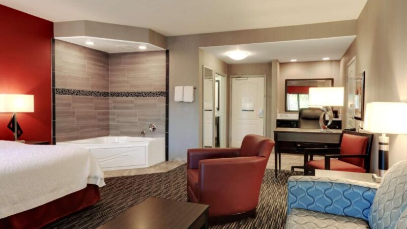 Romantic: Hilton Garden Inn Fontana – Great for couples looking for a pristine and comfortable Jacuzzi suite, on-site dining for an intimate dinner, and friendly staff.
