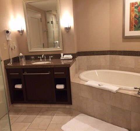 Rooms were laid out well and very nice. The bathroom was a rain fall shower head and big garden tub. Free bottled water and a couple of snacks.