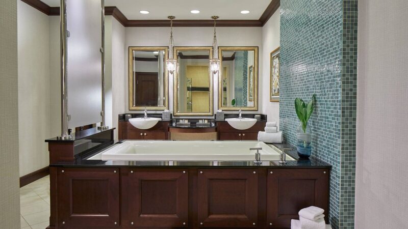 Renaissance Montgomery Hotel & Spa at the Convention Center has suites with separate tubs and showers plus access to a full-service spa hot tub.