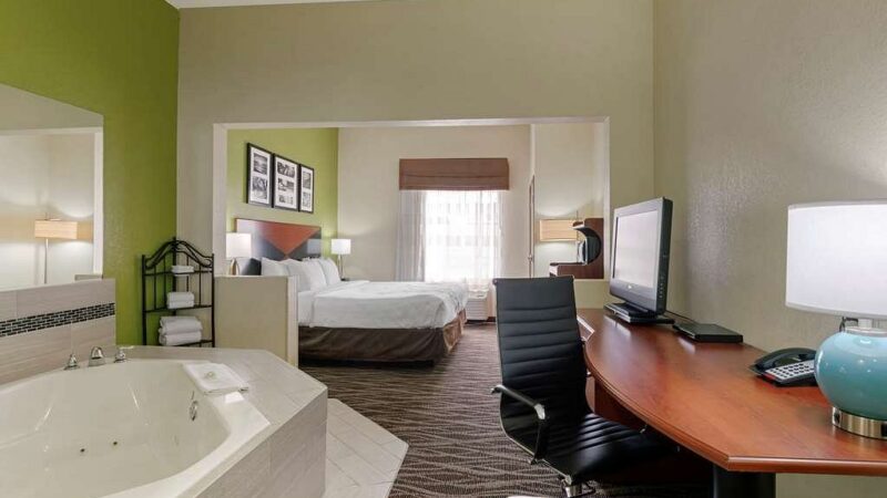 Montgomery hotels with in-room Jacuzzis also offer a variety of amenities to make your stay more enjoyable. Expect to find options like spa services, fine dining, fitness centers, and outdoor pools. Guests can get spa treatments, enjoy meals at on-site restaurants, and take advantage of the fitness facilities for a well-rounded and luxurious experience.