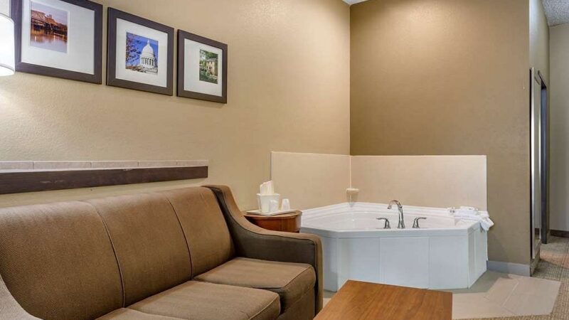 Hotels with Jacuzzi suites in Jonesboro typically feature a range of amenities designed to enhance your stay. Common amenities include complimentary Wi-Fi, flat-screen televisions, mini-fridges, microwaves, and coffee makers. Many properties also offer additional facilities like indoor swimming pools, fitness centers, business hubs, and on-site dining options. For a complete list of amenities, check the specific hotel listings.