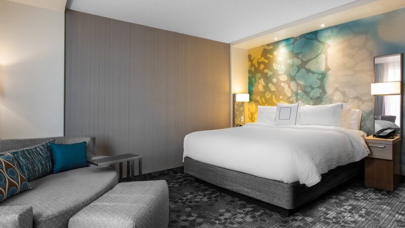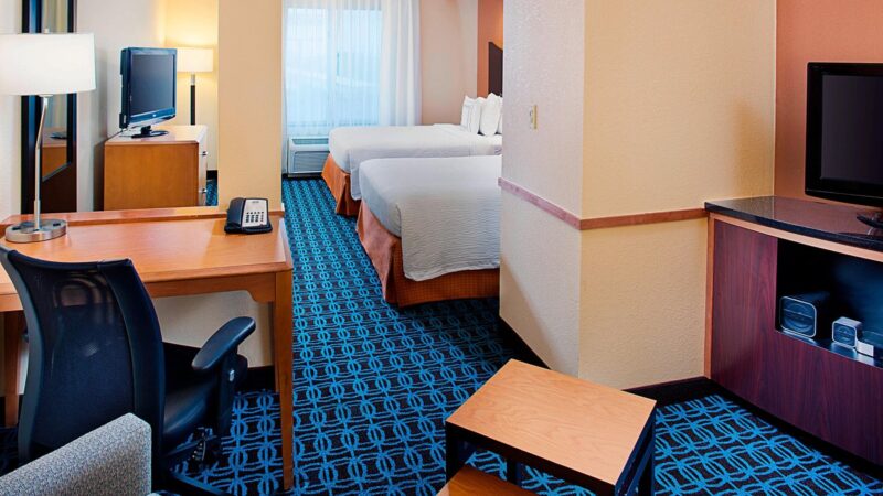 Central Jonesboro Marriott hotel with private hot tubs, indoor pool, fitness center, and access to Craighead Forest Park.