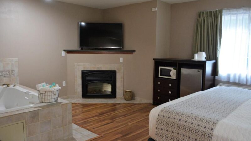 Romantic Lakeside hotel with king beds in roomy hot tub suites, and free breakfast, near attractions.
