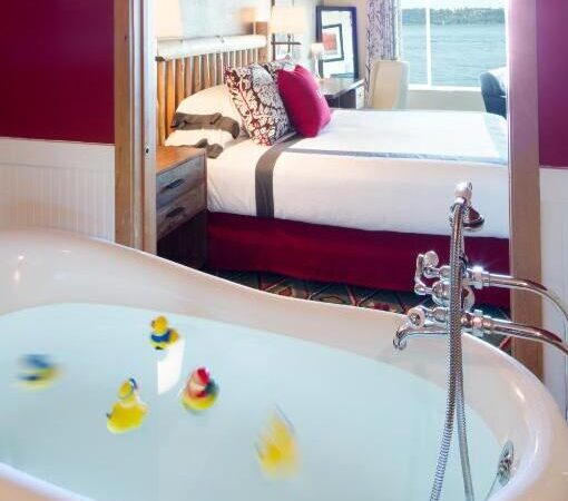 Top-rated hotel with hot tub suites, breathtaking views of Commencement Bay, restaurant, and spa treatments.