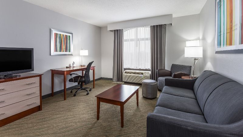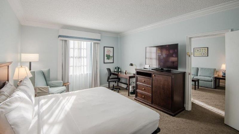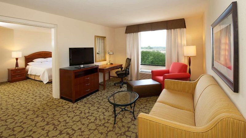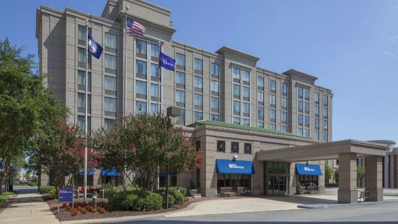 A casual Hilton lodging includes a Jacuzzi suite, premium coffee, and flexible workspaces near Norfolk Waterside District.