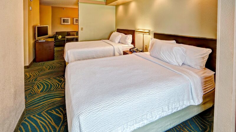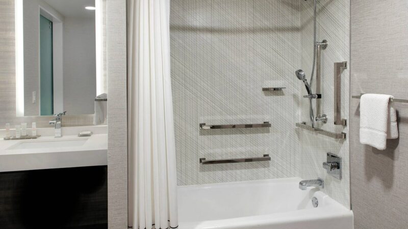 Pet-friendly Marriott suites include a spa tub, flexible workspaces, and a kitchenette near Virginia Beach Boardwalk.