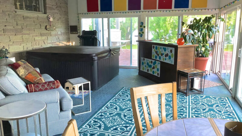 The well-appointed retreat provides a hot tub, a 24-hour market, and soft bedding near Mount Trashmore Park.