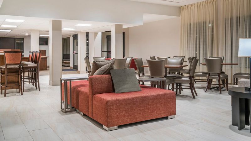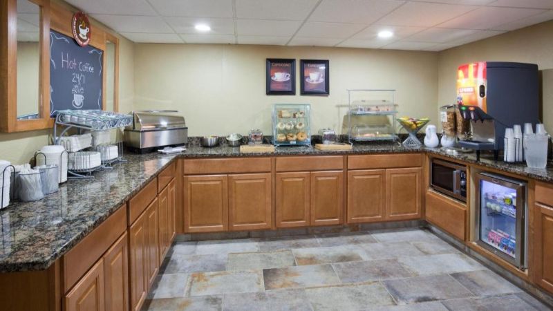 HOTEL: Staff very friendly. Hotel very clean. Happy hour (1) free drink. Nice patio & inside eating area. Lighted parking lot.