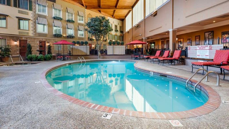 Top pet-friendly Best Western stay with hot tub suites, pool, restaurant, and an on-site fitness center, close to Memorial Beach.