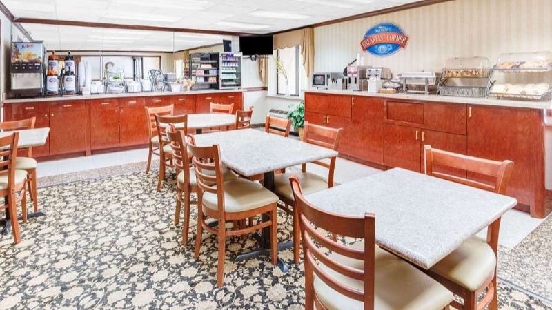 Food quality: 3/5 it’s the typical continental breakfast buffet, scrambled eggs, sausage, biscuits, bagels, toast, juice, muffins, cereal, fruit, etc.