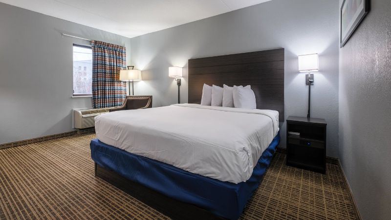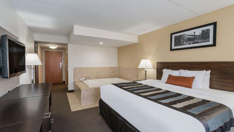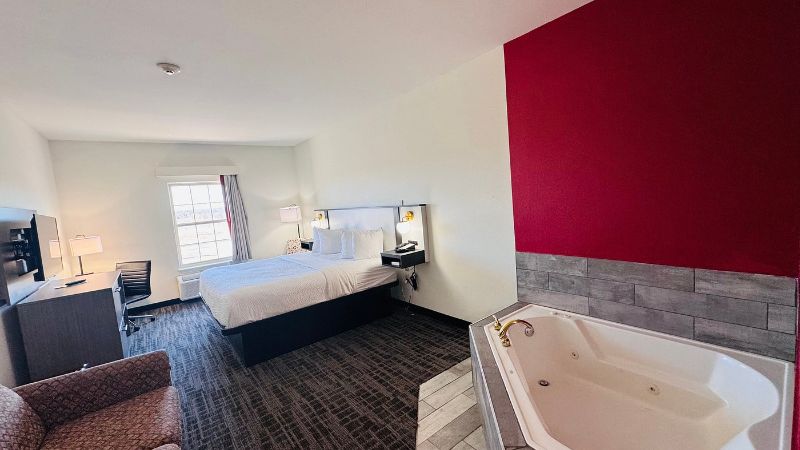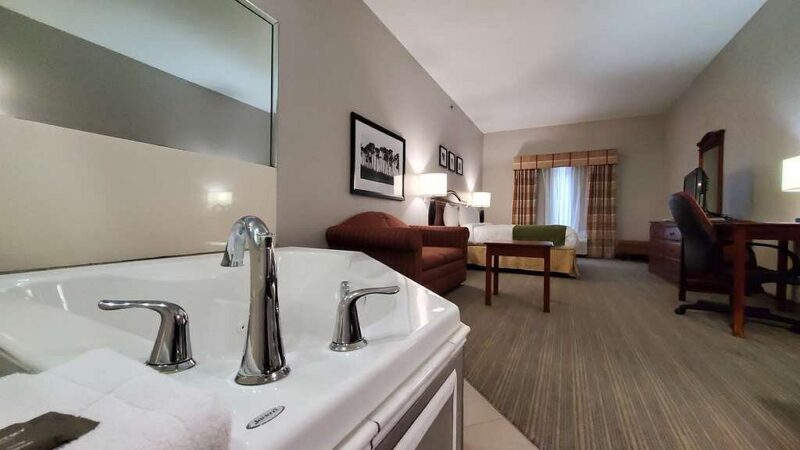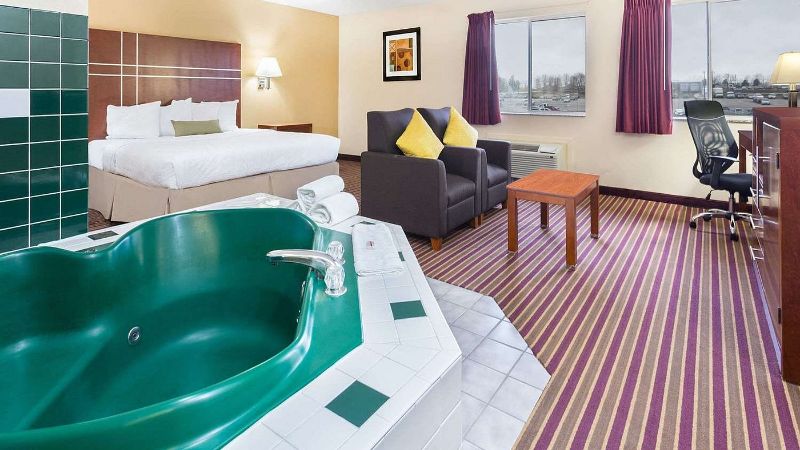The Baymont by Wyndham Louisville South I 65 is the best affordable hotel with hot tub in room in Kentucky. We have a full list of budget-friendly hotels with hot tub in room in Kentucky.