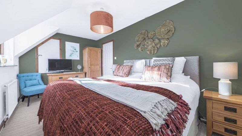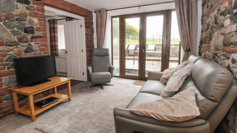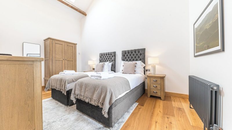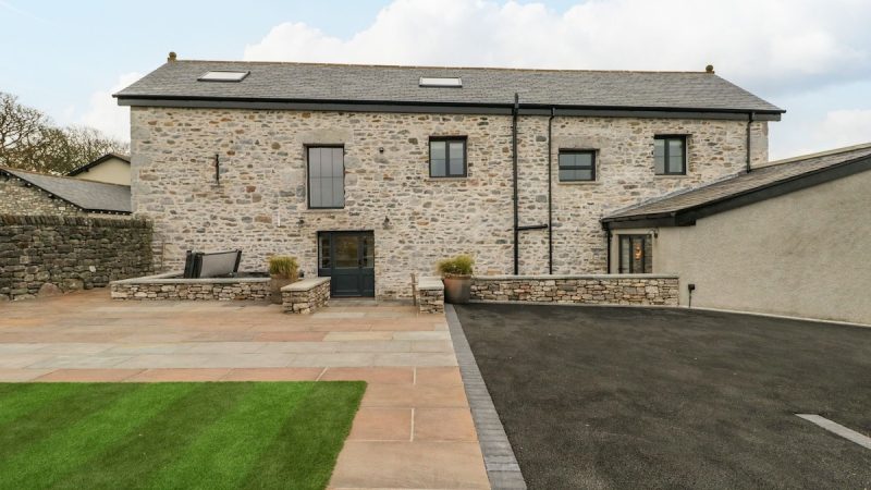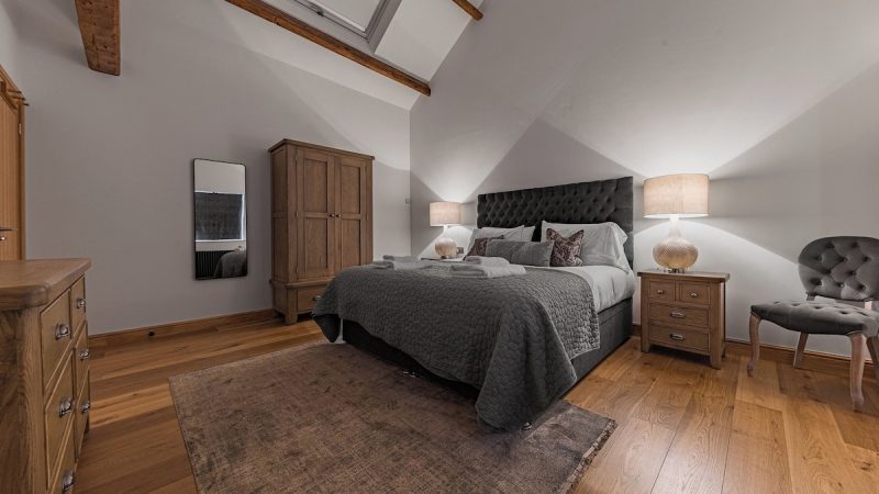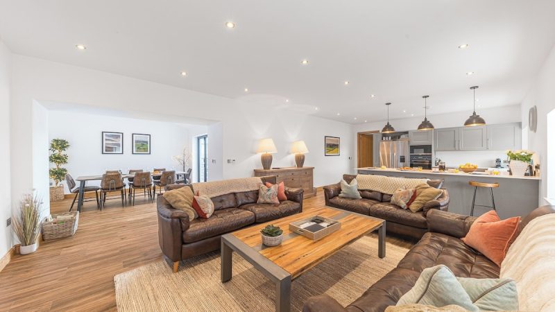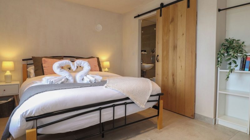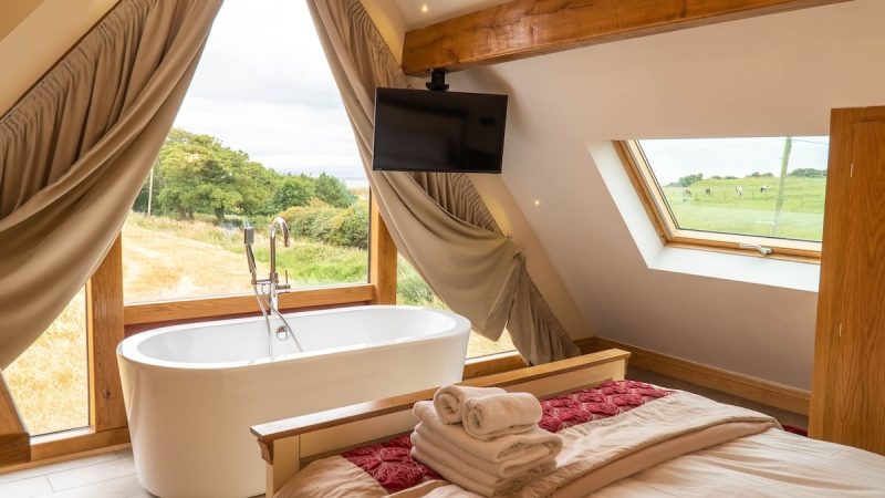 Modern countryside barn with private spa tub, en-suite shower in all rooms, electric fire, and EV charging.