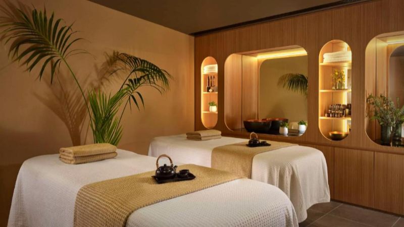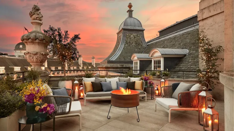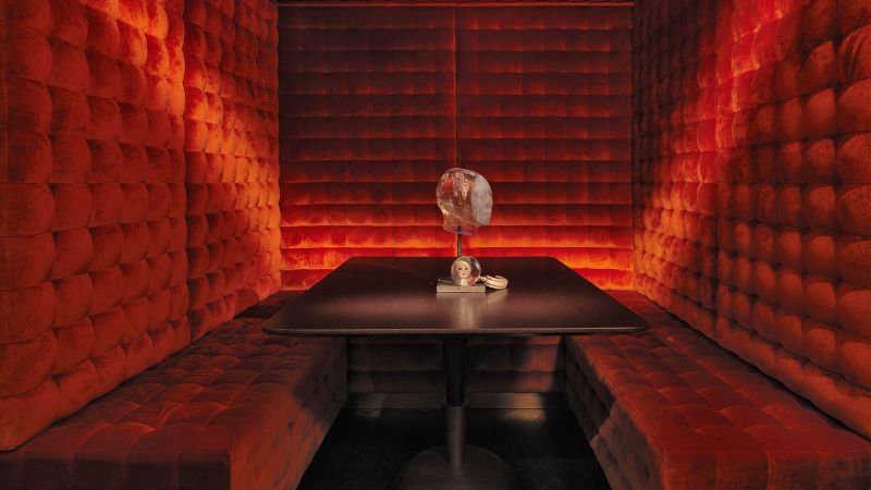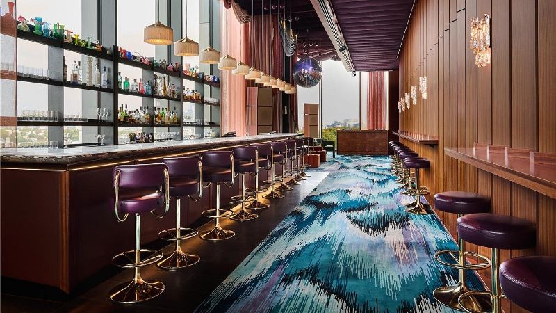 The greenhouse terrace and central courtyard are absolute showstoppers, draped in hanging jasmine and passion flowers that infuse the space with a captivating fragrance. The rich textures, vibrant dark colors, and theatrical lighting throughout the hotel made every corner feel like a work of art.