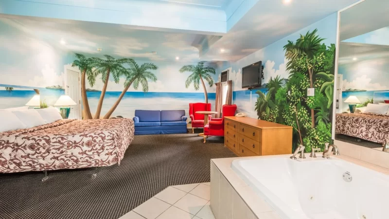 ** On TubHotels.com, the term "Jacuzzi" is employed in a general context to denote any upscale jetted or whirlpool bathtub, and not specifically to indicate products branded by Jacuzzi®. Our descriptions of hotel accommodations are based on our interpretation of information received from travel agencies, and we do not assert with certainty that the accommodations feature a Jacuzzi® brand tub or another brand. Given that the availability of hotel rooms and suites with Jacuzzi® tubs or hot tubs can vary, we advise guests to verify the specific type of spa tub included in their booking with the travel agency managing their reservation.