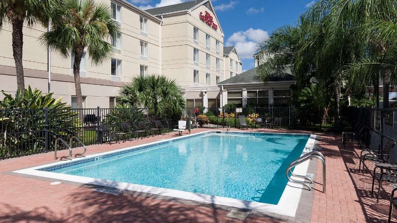 Highly-rated Hilton hotel with private spa baths, swimming pool, and free parking and WiFi, minutes away from airport.