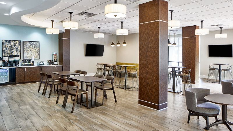 Although the experience started in the lobby, our experience at the bar and in the restaurant were surprising. The hostess station for some reason seemed confused and unsure of how to handle incoming guests. The bartenders although working hard gave off a vibe that they did not want to be there. The Old Fashions, I believe are $18 and are served with maraschino cherries which I guess can be debated, but the biggest takeaway was the Rest. Manager. She walked around the restaurant all night. Our reservation was 10 minutes late or so, no big deal - but every time she walked directly by us she avoided any interaction. Never once smiled, greeted a customer and did not make us comfortable as guests. Our waitress did a great job, but some of my ribs were hot and some were cold. In the morning walking around for coffee even the cleaning staff were unfriendly.