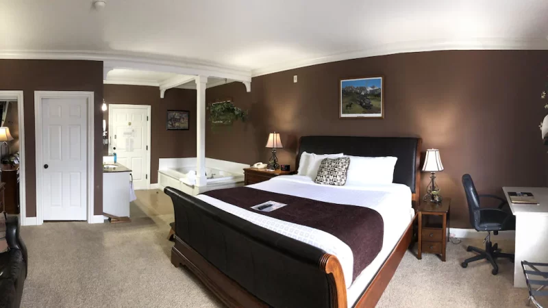 Yes, there are many hotels with whirlpool tub in room with an on-site restaurant serving delicious meals. Some of these hotels include Depot Inn & Suites, The Inn at Hermannhof, and Still Waters Resort.