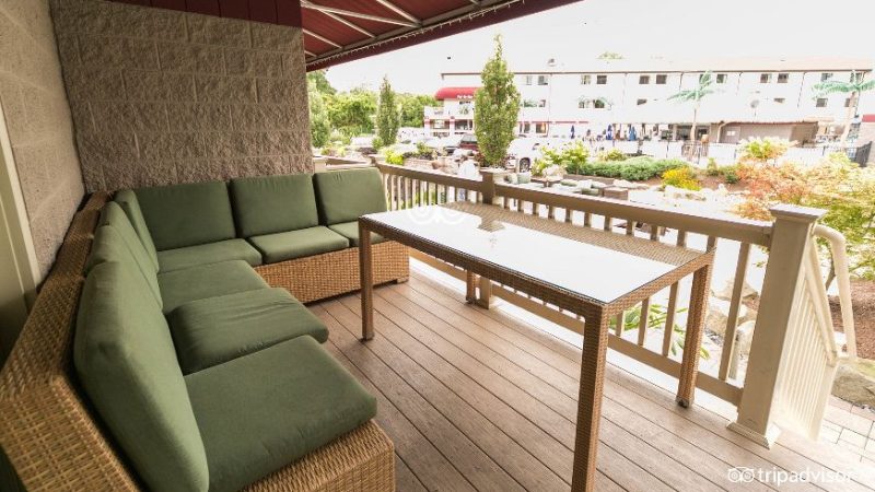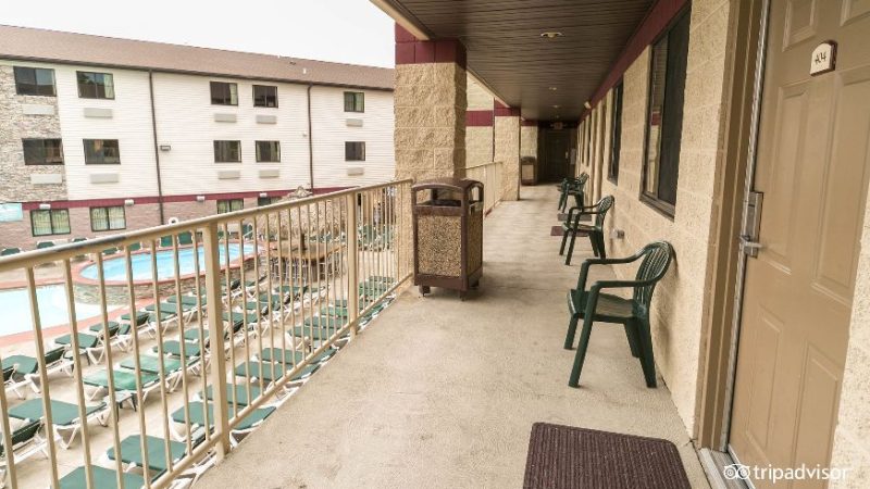 Cons: everything else. Room was filthy. Bathtub was stained and moldy, mirrors had handprints from previous guests, there was dust everywhere, and it looked like nobody had vacuumed with an edge tool in a few years. The couch and chair were old and full of stains, and the pull out bed was so broken we couldn't even let a kid sleep on it. On the bottom of it 2 of the 8 springs to hold the support canvas in place were still attached. Two. The others were gone or dangling. This seems simply unsafe. Mattresses were hard, and the parking lot was dimly lit.