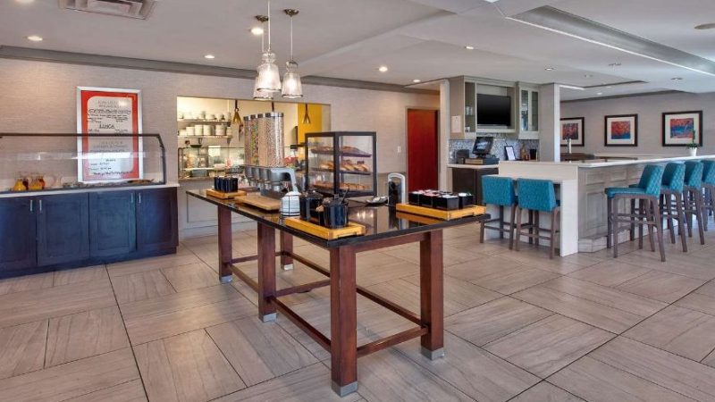 Pros: friendly front desk staff at check-in and out. Decaf coffee options in room and at breakfast. Breakfast was edible.
