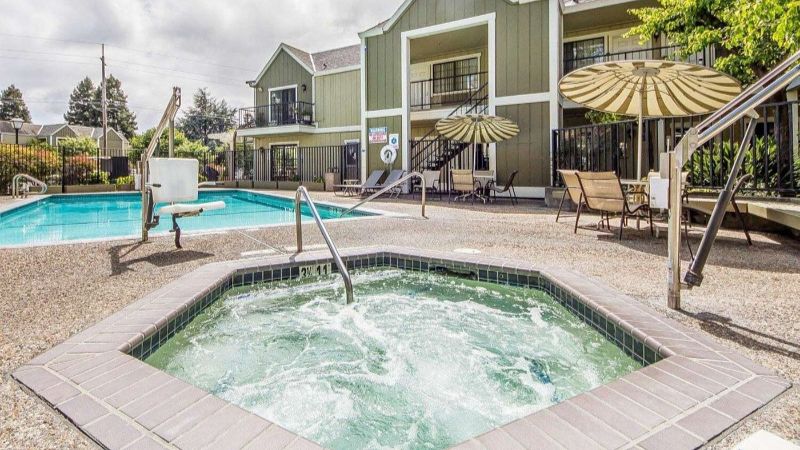 Vacaville hotel with hot tub in room, pool and free breakfast, between San Francisco and Sacramento.